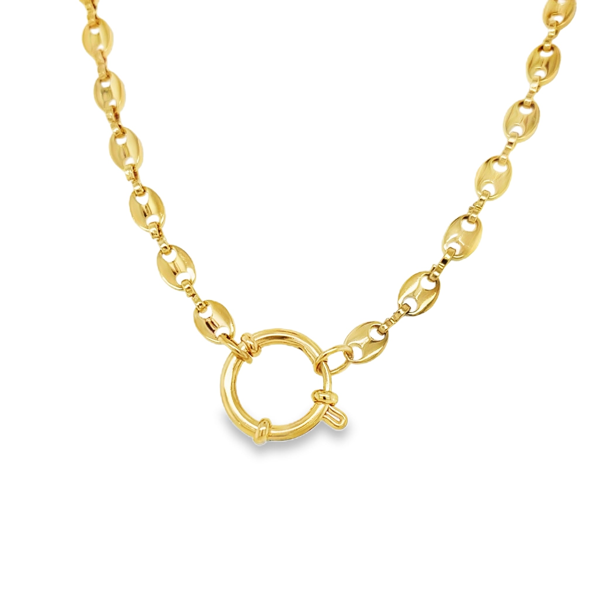 This Mariner 14kg dipped Necklace is 16 inches and Made with 14kg water resistant plating . Has Large Open Round Lobster Clasp for Charms and Pendants
