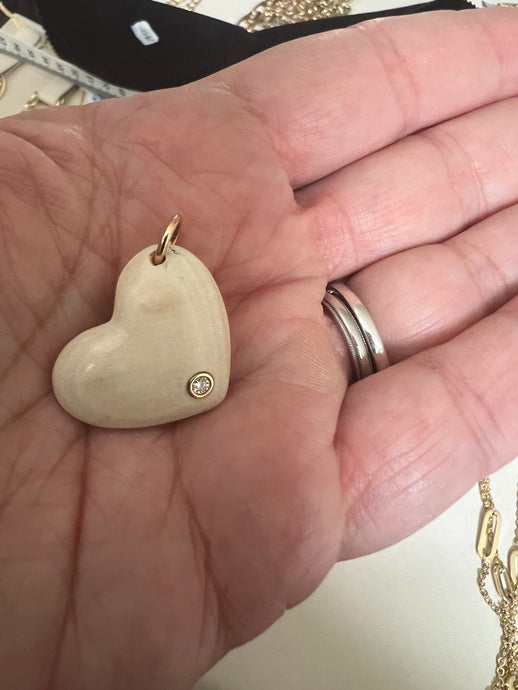 14kg Mammoth Heart with Bezel cut Diamond inset and bail