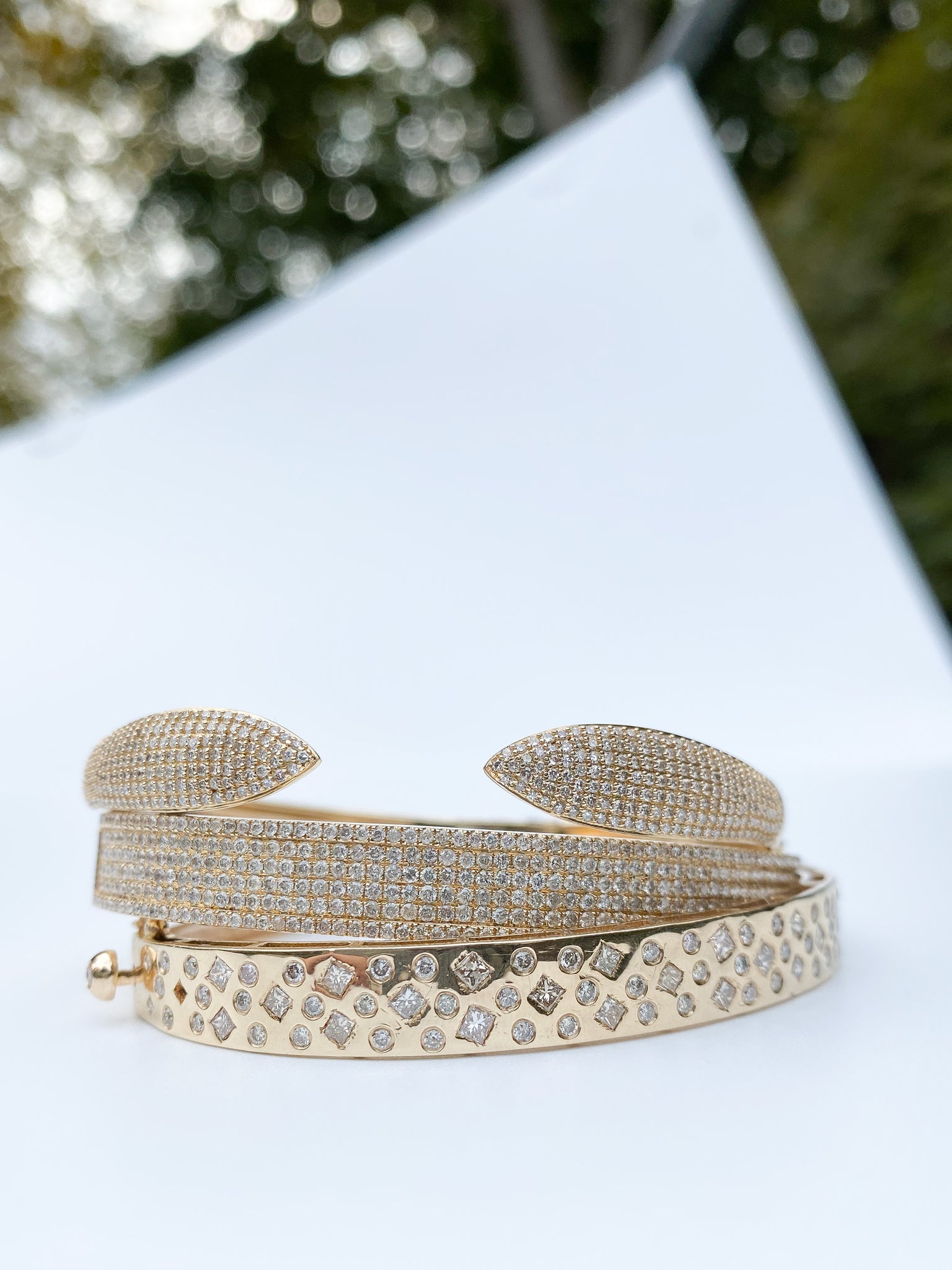 Gorgeous 14 kg bangle with dotted with white diamonds.