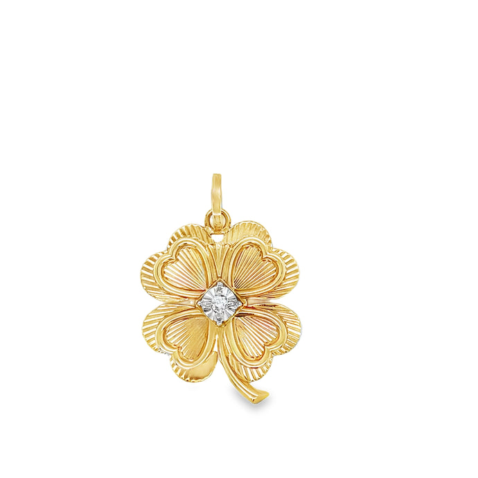 14kg Diamond and Emerald Four Leaf Clover Pendant