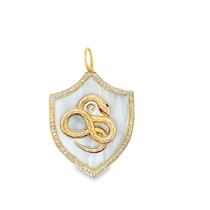 14kg Diamond and Mother of Pearl Snake Shield Pendant