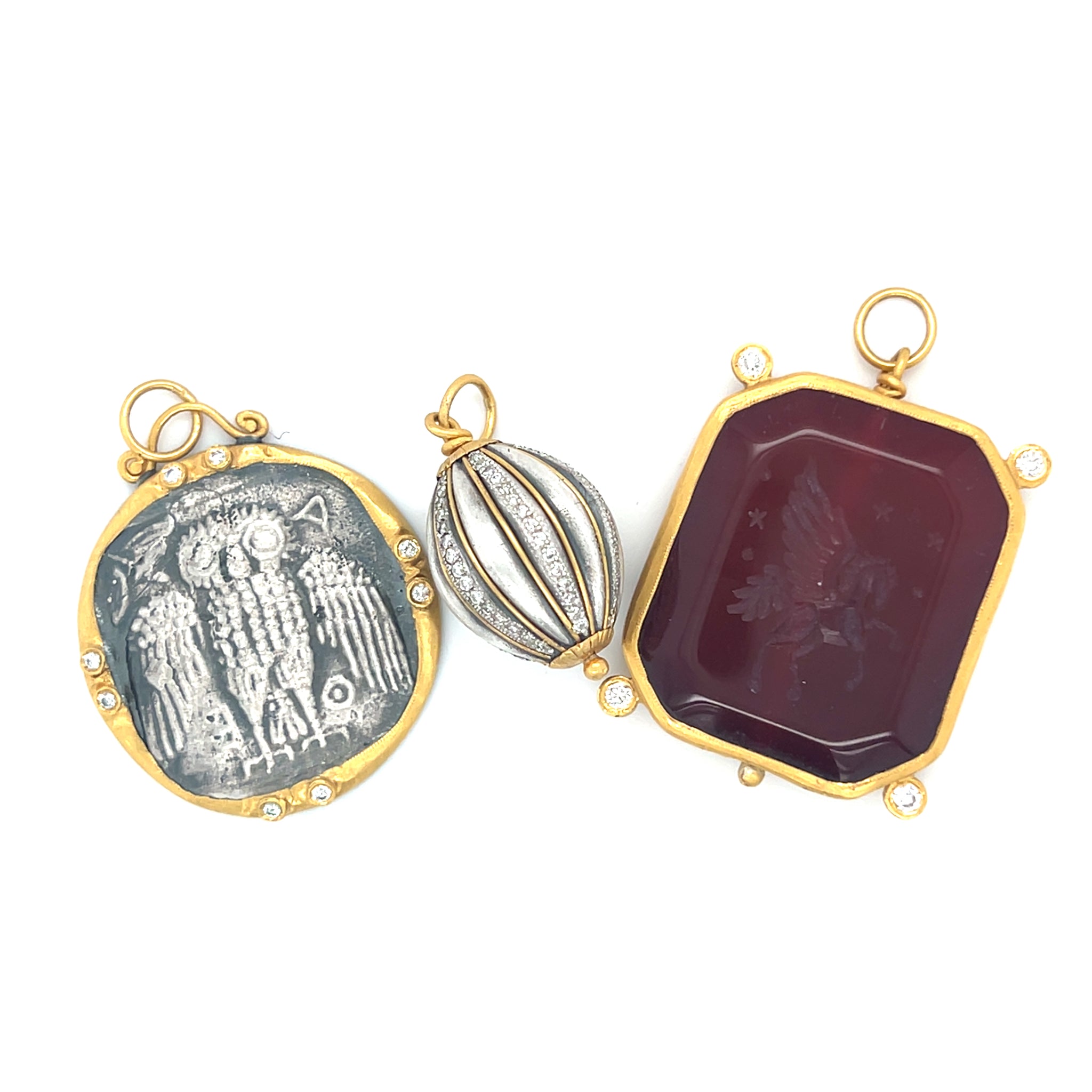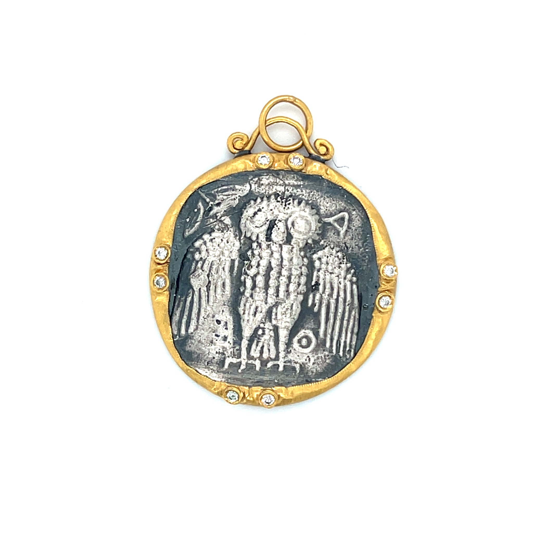 Handmade 24kg Silver Owl Pendant accented with diamonds